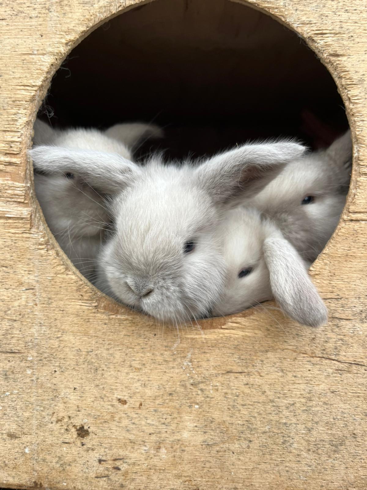 Buiten verzorgen we de dieren. Op de boerderij houden we kippen, konijnen, cavia’s, fretten, kalkoenen, schapen en de hond. Daarnaast zijn buiten ook de tuinen waar groente, fruit, kruiden en bloemen groeien. Verder zorgen we er als hovenier voor dat de boerderij er netjes bij staat.