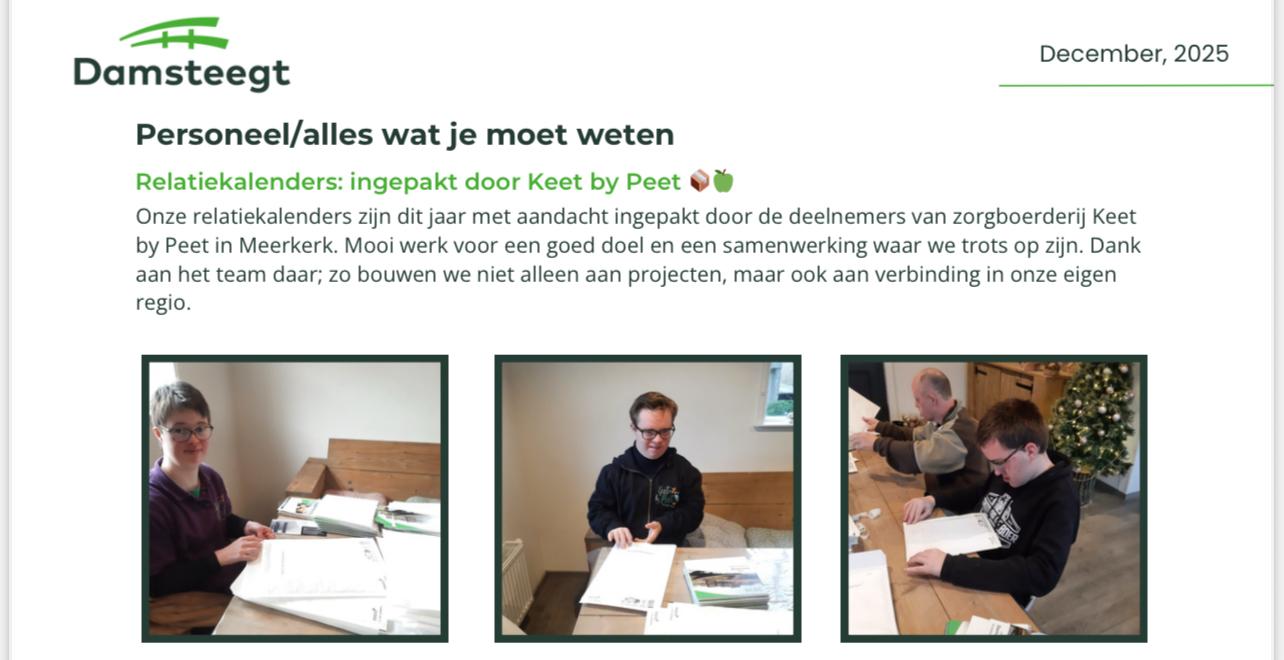 In de laatste weken van 2025 maakten we de jaarkelenders voor Fulltank verzendklaar . Een mooie klus, die ieder op zijn eigen tempo kan doen. Samen staan we sterk. Want iets doen voor een ander, daar wordt iedereen gelukkig van. Bekijk hier de video.
