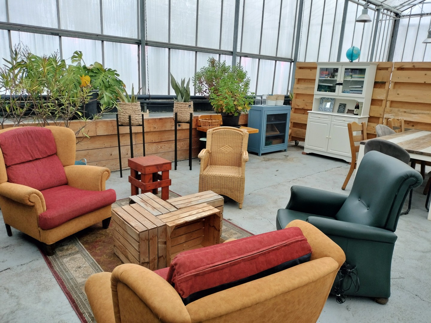 Naast de ruime en hoge kassen is er een aparte binnenruimte waar de dag gestart wordt. Ook is dit de plek waar we de gezamenlijke lunch (van eigen gekweekte producten) bereiden én eten. Het is tevens de plek waar een deelnemer de rust vindt om zichzelf even terug te trekken waar dat nodig is. Want ook daar is bij ons ruimte voor.